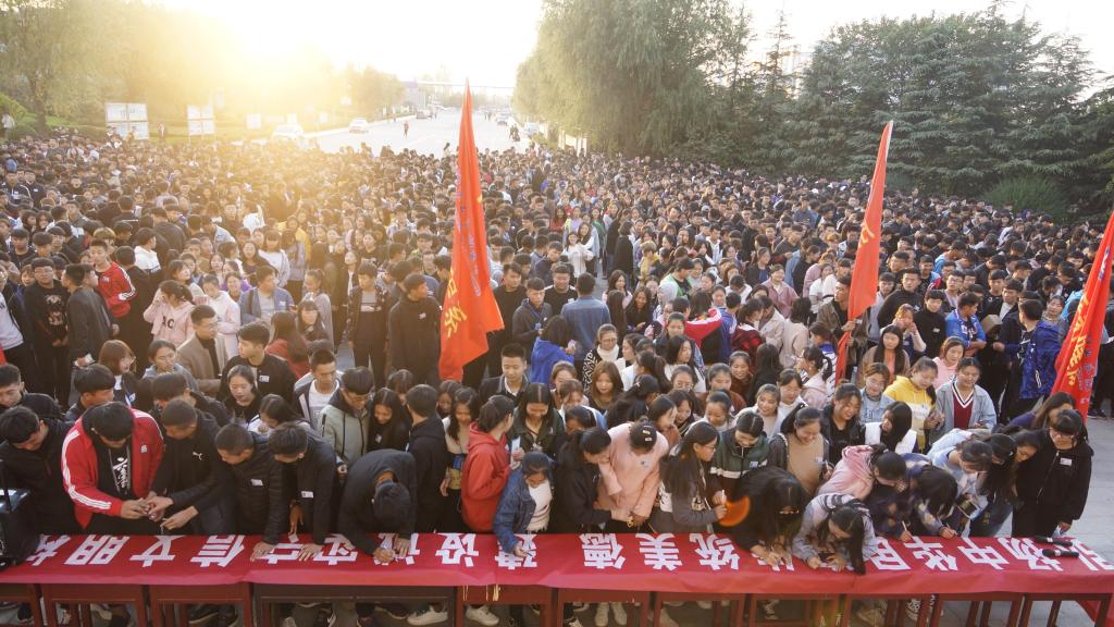 大一新生在横幅上签字