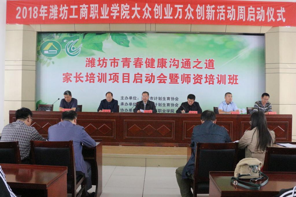 为认真贯彻落实国务院关于强化实施创新驱动发展战略,进一步推进大众创业万众创新深入发展,不断激发市场活力、增强全社会的创造力、凝聚改革发展正能量,按照国家发改委、省发改委和教育厅的部署要求,潍坊工商职业学院 “大众创业万众创新”活动周于10月9日在我院第二报告厅同步启动。学院党委副书记、副院长刘国庆同志主持会议,院长王传旭、党委书记郑志松等学院领导,学生处、团委书记和各院系负责人以及学生代表200余人参加启动仪式。