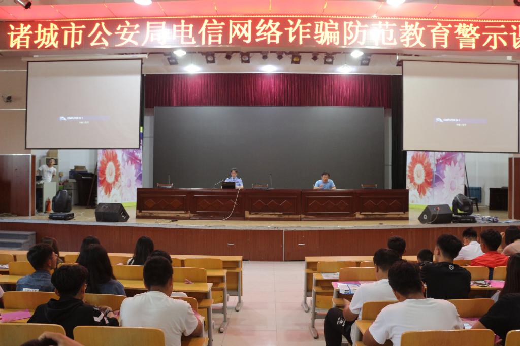 为加强大学生对财产安全的意识,普及防范电信网络诈骗知识,提高我院大学生安全防范意识并预防新型诈骗。根据山东省公安厅、山东省教育厅、共青团山东省委发出联合倡议和要求,9月11日下午,特邀诸城市公安局刑警大队来我院为师生做电信网络诈骗防范教育警示课专题讲座,各院系主要负责人及其他学生代表1000余人参加。