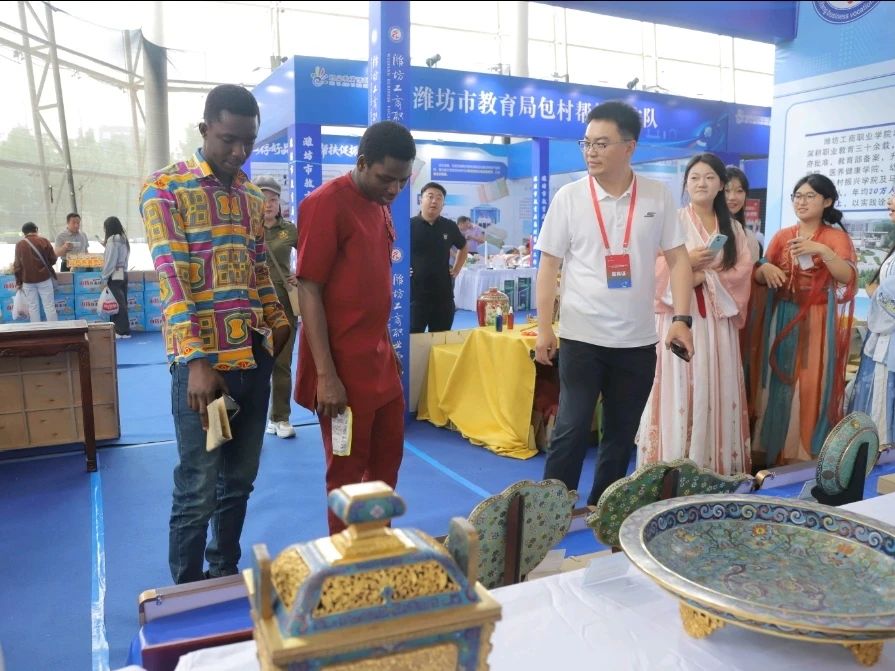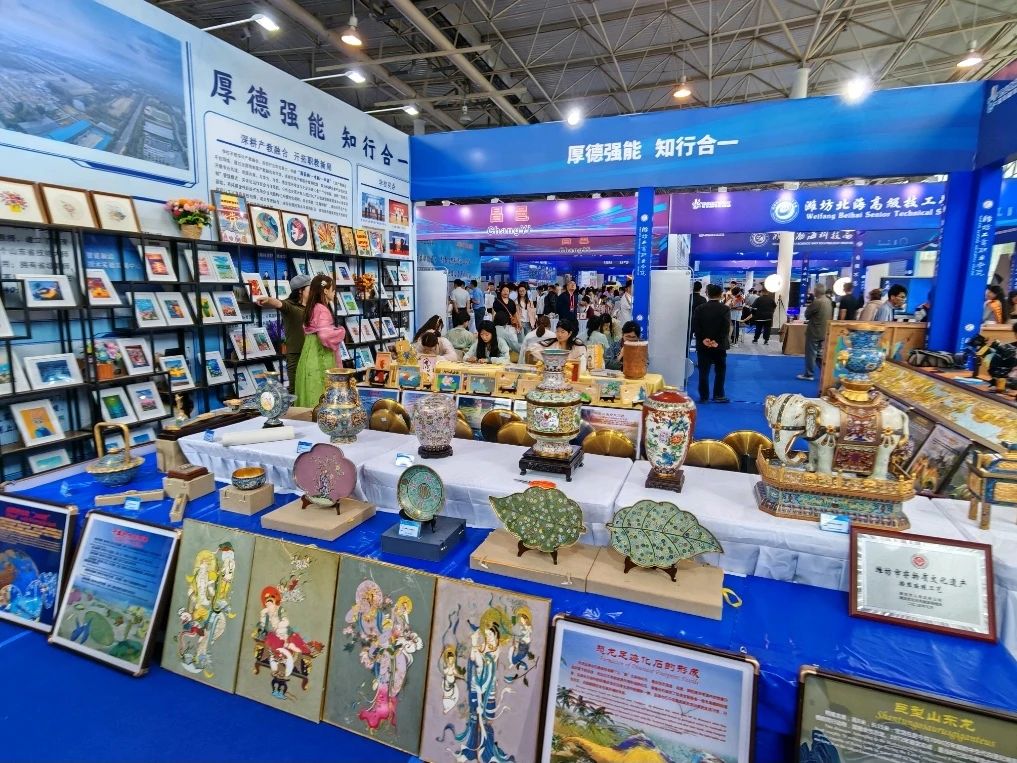 潍坊工商职业学院一直高度重视非遗文化进校园、进课堂工作,先后成立了掐丝珐琅、诸城绿茶和诸城古琴等非遗项目传习中心,以“非遗+教育”的模式培养高素质技能型人才,共培养非遗传承人才2000多人,师生共创非遗作品2600余件。其中,9.83米的掐丝珐琅《清明上河图》画作创世界纪录。多年来,学校一直深耕产教融合校企合作,构建起“国家—省—市”三级产教融合平台,联合600多家企业专业共建,携手华为、中兴、惠发等龙头企业共建10余个现代产业学院,形成了“专业共建+资源共享”的产教融合新生态。
