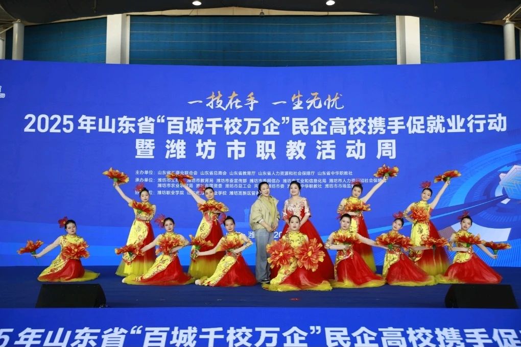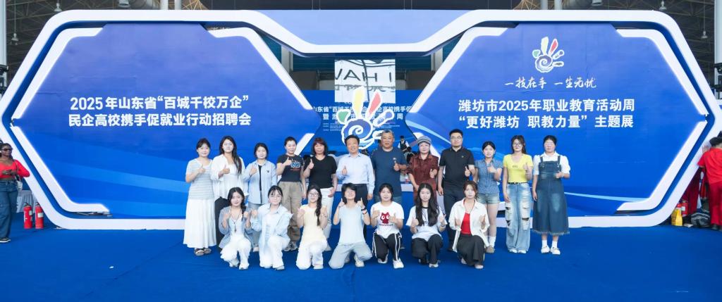 5月23日,2025年山东省 “百城千校万企” 民企高校携手促就业行动暨潍坊市职教活动周启动仪式在富华国际会展中心盛大开幕。山东省人大常委会副主任、山东省工商联主席(兼)、省总商会会长王随莲,潍坊市委书记刘运,副市长陈端梅等省市领导参观了我校展区。在这次盛会中,我校师生作品受到广泛关注。校长张绍秋,党委书记葛国文等校领导出席活动。