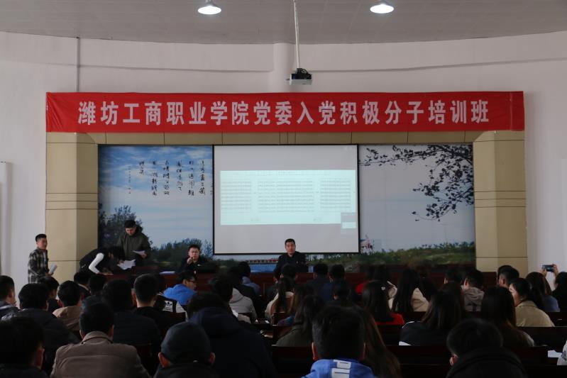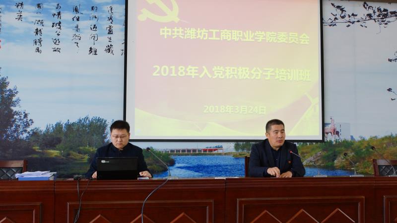 为贯彻《党章》的基本要求,做好发展党员工作,3月24日上午,潍坊工商职业学院党委举办2018年学生入党积极分子培训班开班仪式。学院党委副书记刘国庆同志代表学院党委出席并讲话,学院各系部处室180多名入党积极分子和党委工作部工作人员参加了开班仪式。