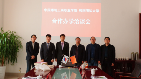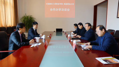 3月23日,潍坊工商职业学院与韩国明知大学合作办学洽谈会议在学院国际交流中心230举行。院长王传旭、副院长缪文卿及相关负责领导与明知大学国际交流院金庸达副院长、明知大学中国事务所部长毕志鹏出席会议。