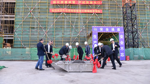 青建集团常务总裁刘振龙在致辞中代表项目承建单位青建集团向学院表示热烈的祝贺,保证在施工过程中,一定会派出强干的项目管理团队,最精干的施工队伍,科学调配,精心施工,将严格遵守国家法规及施工规范,认真履行合同,以高起点开局,高水平建设,高要求管理,在保证质量、安全的前提下,确保工期,将这三个建设项目打造成精品工程、模范工程。