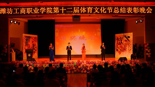 首先,郑立峰副院长对我院第十二届体育文化节、第九届心理健康节和文明宿舍评比情况做了总结报告。他对第十二届体育文化节、第九届心理健康节和宿舍文明评比取得的成绩给予了充分肯定,他强调,体育文化节、心理健康节和文明宿舍评比活动是加强我院学生素质教育的品牌活动,是校园文化建设的重要内容,各项活动的成功举办,是全院师生共同努力的结果,相信通过我们举办水平的不断提高,一个团结、和谐、文明、进取,富有文化底蕴的校园,一定会在全院师生的共同努力下全面展现。接着,大会主持人宣读了《关于表彰第十二届大学生体育文化节、第九届心理健康节和文明宿舍先进集体及个人的决定》,其中第十二届体育文化节共表彰了 76个集体奖,336个个人奖, 第九届心理健康节共表彰了49个集体奖,102个个人奖,文明宿舍共表彰了60个宿舍,包括29个男生宿舍,31个女生宿舍。随后,与会领导分别为获得第十二届体育文化节、第九届心理健康节和文明宿舍获奖的团体和个人颁发了证书及奖品。在颁奖的中间,学院还安排了丰富多彩的文艺节目,来自劲舞团的青春舞域,广播站的中国故事,服纺艺术系的舞蹈—做军鞋等节目把颁奖晚会推向了高潮。