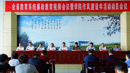 5月17日下午,潍坊工商职业学院在学院图书信息楼第二报告厅召开“全省教育系统廉政教育视频会议暨学院作风建设年活动动员会议”。会议有两个议程,第一个议程是观看全省教育系统廉政教育视频,第二个议程是召开学院作风建设年活动动员大会,主要目的是进一步统一全院思想认识,加强干部作风建设,以良好的作风来推动学院各项工作再上新台阶,促进学院各项事业的新发展。学院院长王传旭、党委书记郑志松等领导班子成员与学院副科级以上的领导干部参加了会议,会议由王传旭院长主持。学院领导班子成员兼党委工作部部长刘国庆同志宣读学院党委《关于在全院开展“作风建设年”活动的实施方案》,对学院开展“作风建设年”活动作了全面安排部署,明确提出了开展作风建设年活动的指导思想、工作原则、参加范围、主要内容、实施方法和步骤。