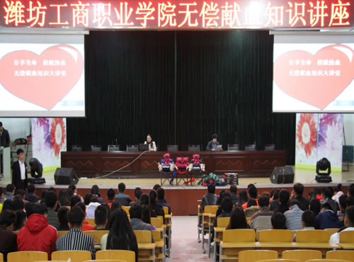 冬季来临,临床医疗进入季节性缺血阶段,为弘扬无偿献血的奉献精神,用爱心为生命加油,潍坊工商职业学院会同潍坊献血工作委员会于2016年11月18、19、20日三天在我院全体大学生中开展了无偿献血活动。