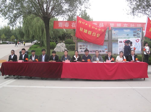 9月23日下午,以“青春社团、激情无限、阳光校园、和谐致远”为主题的学院第六届社团文化节在图书信息中心广场开幕。院长刘焕仁、副院长郑立峰,学生处、团委负责人及各系主任、团总支书记、全体辅导员出席了开幕式。社团联合会全体成员、60个社团的骨干成员及大一新生5000余人参加了开幕式和社团纳新大会。仪式由团委书记陈锋主持。