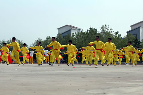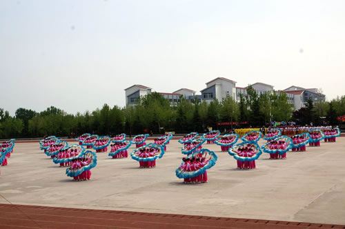 开幕式上,学院大中专学生进行了扇子舞“中国梦”、武林风、青春啦啦操、广播体操等大型团体操表演,将开幕式推上了高潮。