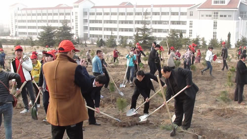 3月12日下午,在第37届植树节到来之际,学院学生处、团委和总务处联合组织开展了以“倡导低碳生活,植树美化校园”为主题的植树种绿共建绿色校园活动。参加本次植树活动的有在校的学院领导、学生处团委及总务处相关人员、各系部主任以及团支部书记、社团联合会全体成员、院学生会主席团成员、青年志愿者协会(义工协会)和爱心社成员等志愿服务类社团代表共计160余人。