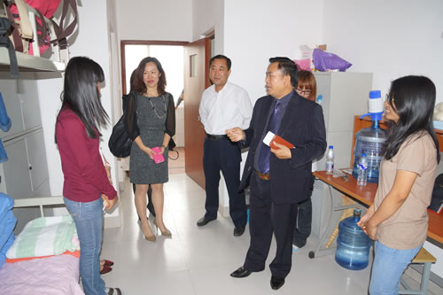 吴洪杰书记在讲话中强调,将在市政府的领导下,协调学院和社会各界努力为留学生们提供全方位的支持和保障,相信柬埔寨王国留学生班的开办,必将为我市人才引进和培养增添新的活力,推动全市教育工作再上一个新的层次。王立波院长在欢迎辞中介绍了学院和国际化办学基本情况,并希望留学生们尽快融入到学院大家庭的氛围中,勤奋学习、自立自强、学有所成。高屯领事就中柬两国悠久的传统友谊和友好的现实合作进行了阐述,并对留学生班寄予厚望。随后,在院领导的陪同下,高屯领事对留学生的学习、生活区域进行了检查指导。