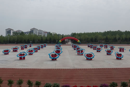 开幕式上,学院大中专学生进行了军体拳、“动感的青春”健美操、“中华魂”武术和“舞动的春天”扇子舞等大型团体操表演,将开幕式推上了高潮。