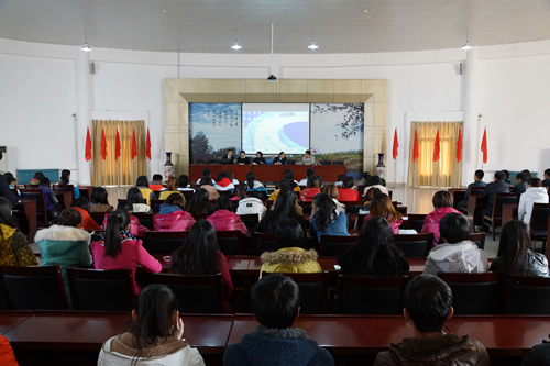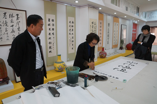 在王立波院长、郑立峰副院长的陪同下,林贞淑一行对学院100多名正在进行韩语研修的学生,介绍了庆尚大学的相关专业特点、留学基本条件等具体事项,并实地参观了我院的师生作品展览馆、艺术展馆、校史馆、实训中心等教学、实习场所。