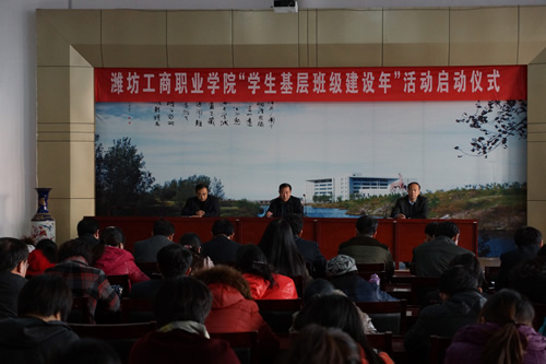 11月19日下午,我院在第二报告厅举行了“学生基层班级建设年”活动启动仪式。院长王立波出席并讲话,各系部团支部、辅导员代表、学生代表共100多人参加。副院长郑立峰主持仪式。