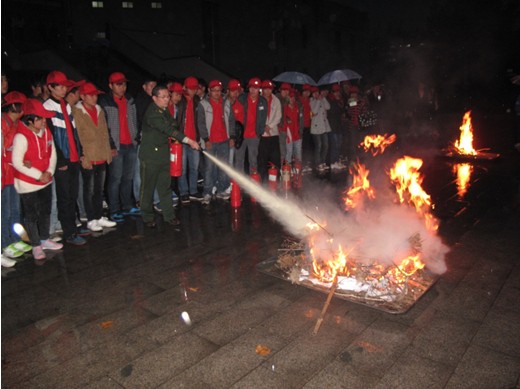 首先由我院青年志愿者协会消防志愿者服务队的学生代表举行了宣誓仪式,志愿者们庄严宣誓,铿锵有力的声音荡漾在整个报告厅。随后,诸城市消防大队孙明队长给同学们作了消防安全知识专题讲座,他从安全用火、用电、火场自我保护、灭火器的使用等方面,给同学们上了一堂精彩的安全教育课。讲座结束后,孙队长又向同学们示范、讲解了灭火器的使用方法,并进行了现场灭火演示。
