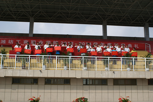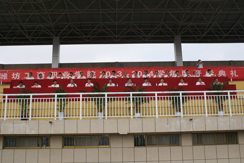 9月23日上午,潍坊工商职业学院2013—2014学年开学典礼在体育场隆重举行。诸城市教育局党委委员、教研室党支部书记吴洪杰同志,教育局职成教科科长郑兆学同志出席,院长王立波致辞,院领导班子成员、各相关处室系部负责人及全体师生参加了典礼。院党委副书记、副院长张朝辉主持仪式。