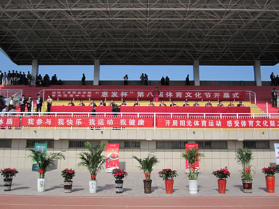 4月26日,潍坊工商职业学院、密州街道中心学校“惠发杯”第八届体育文化节在学院标准田径场隆重开幕。诸城市人民政府副市长许传平、教育局局长李庆平、体育局副局长吕文、学院院长王立波及企业界代表出席了开幕式。许传平副市长宣布体育文化节开幕,李庆平局长、吕文副局长、王立波院长分别致辞,开幕式有学院副院长郑立峰主持。