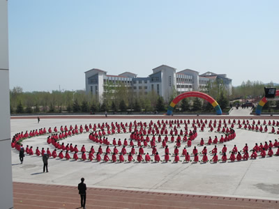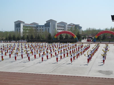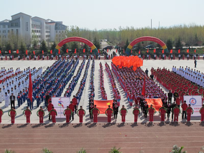开幕式上,我院大中专学生进行了军体拳、“青春的旋律”健美操、跆拳道和“阳光路上”等大型团体操表演。