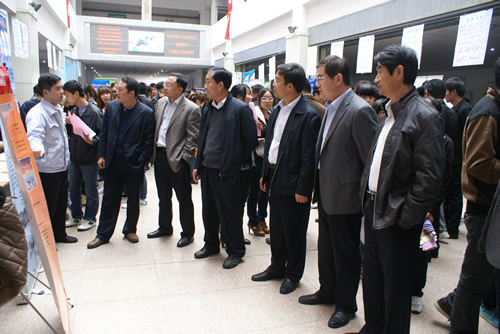 为贯彻落实省、市有关毕业生就业政策,做好2012年毕业生就业工作,满足用人单位对优秀人才的需求,更好地帮助毕业生顺利就业, 11月3日,“诸城市2012年秋季人才招聘洽谈会暨潍坊工商职业学院2013届毕业生校园招聘会”在我院图书信息中心举行。来自省内外的300多家用人单位现场招聘,学院应往届毕业生2300多人到会求职。市人社局、教育局的领导、院长王立波、工会主任唐德良亲临现场视察、指导。