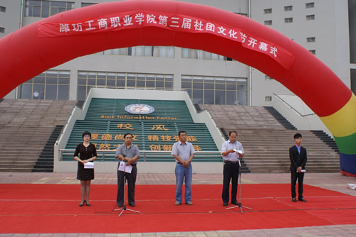 9月21日下午,学院第三届社团文化节开幕式及社团纳新仪式在图书信息中心广场举行。学生处处长陶炳勇主持仪式,副院长郑立峰讲话。