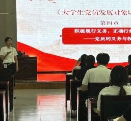 培训期间,课程内容丰富、形式多样。谢瑞凤主讲《江山就是人民,人民就是江山》,深刻阐释了党的根本立场;省委教育工委党建指导员陈宇作《新时代广大青年对意识形态工作的认识》报告,强调青年提升意识形态能力的重要性;王卫以《功成不必在我,功成必定有我》为题,结合实例引导学员端正动机、锤炼精神;李冰带领学习党章并讲解《学习入党流程,做好党员发展对象的提升》,明确党员标准与发展程序;昌倩主讲《积极履行党员义务,正确行使党员权利》,强化学员对党员责任与权利的理解。