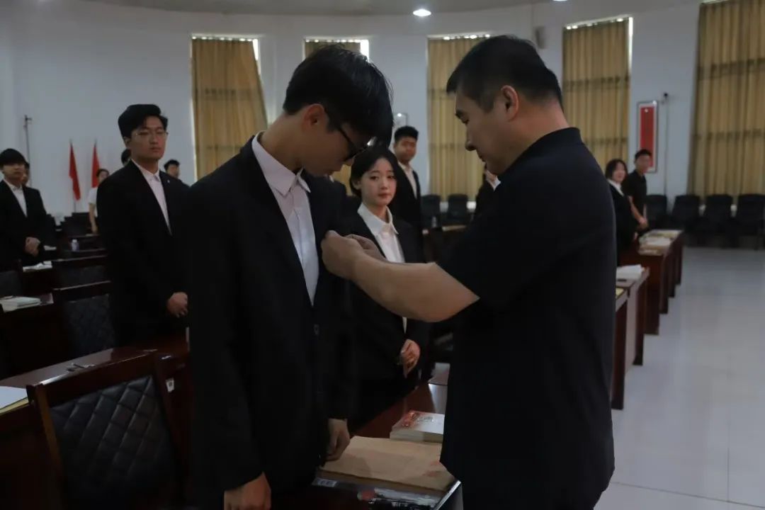 随后,刘国庆郑重为新党员逐一佩戴党徽。佩戴过程中,他勉励大家牢记身份,切实发挥模范作用。