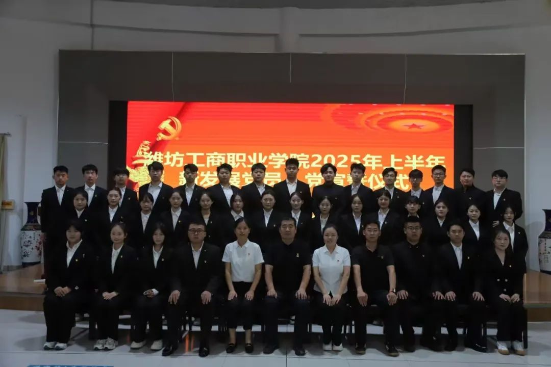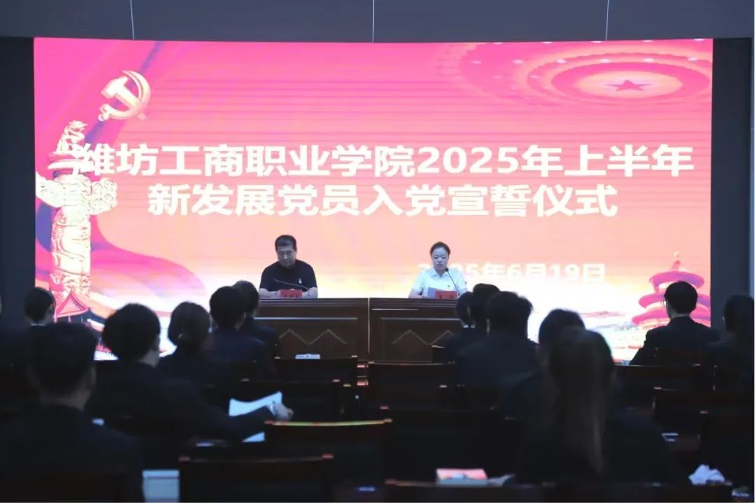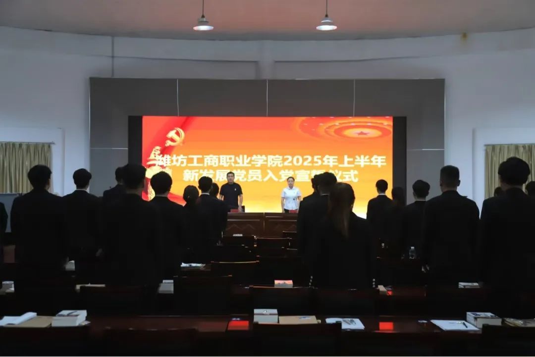 为进一步加强党员队伍建设,增强新发展党员的党性修养和责任感、使命感,6月19日,潍坊工商职业学院举行2025年上半年新发展党员入党宣誓仪式。党委副书记、副校长刘国庆,党建办全体教师以及今年上半年新发展的39名预备党员参加了此次仪式。宣誓仪式由党建办主任李冰主持。