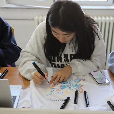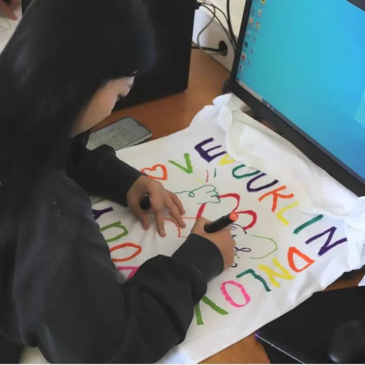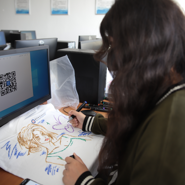 在活动中,学生们被邀请以“心中的花园”为主题设计并绘制T恤图案。他们运用各种辅助工具,将心中的花园以独特的艺术形式展现在T恤上。在实验助理的精心指导下,学生们有序地按照创作流程进行设计,每一件T恤都成为了他们内心世界的生动映射,充满了生机与活力。