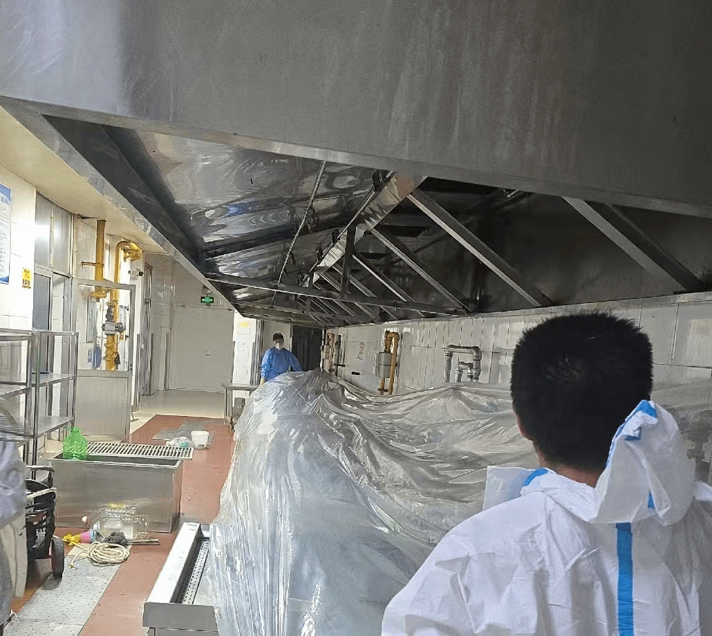 烟道深度清洗,高压设备+环保药剂彻底清除厚重油污,消除火灾隐患,排烟更顺畅!