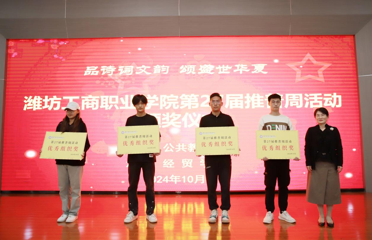 诗词大会和推普周活动都是我校语言文字工作的重要内容,会上,还同时颁发了我校第27届推普周活动的优秀组织奖,在推普周期间,获奖学院组织了丰富多彩的宣传推普活动,推动了语言文字工作的发展。