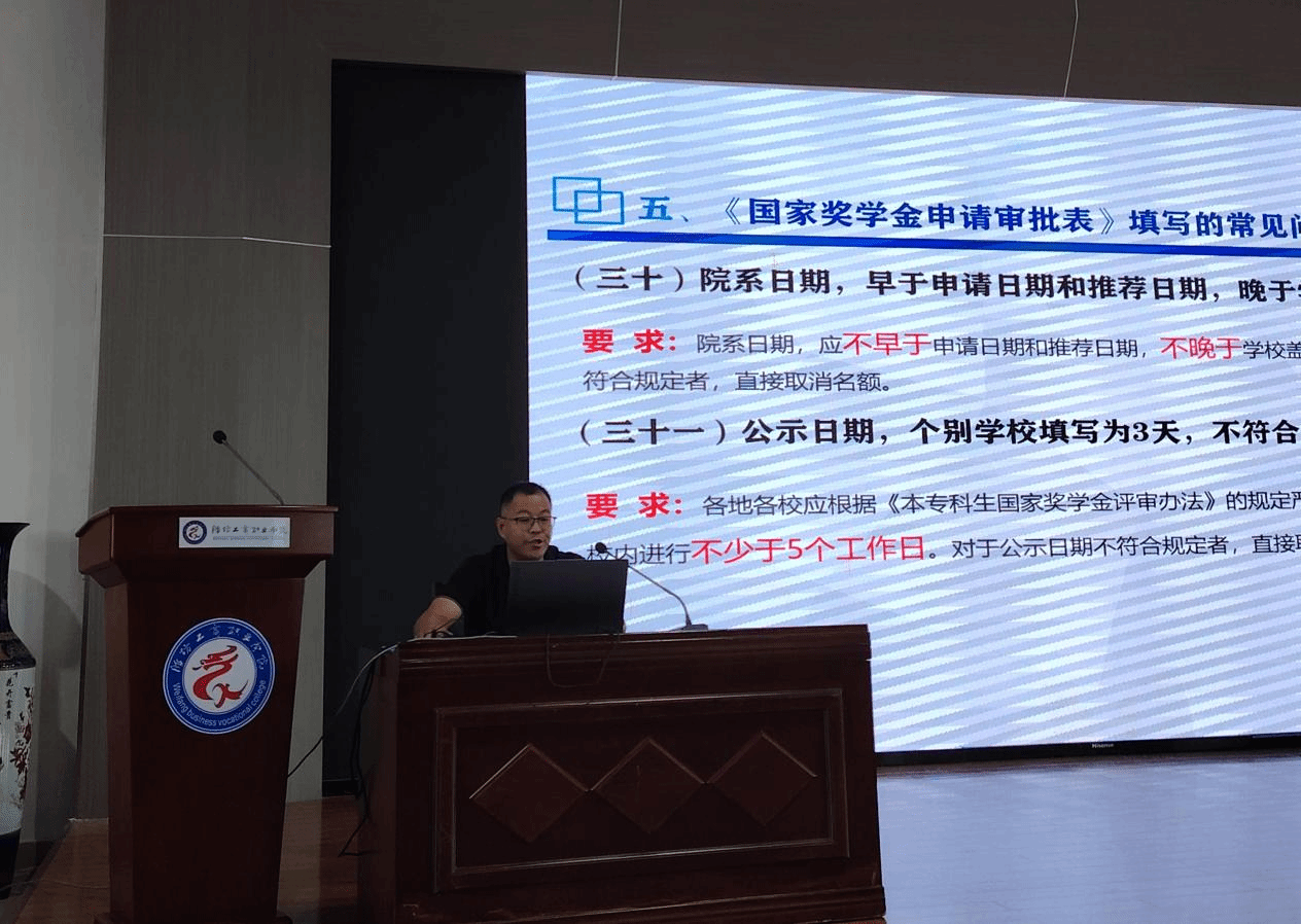 学生处副处长辛玉刚围绕学生资助工作进行系统讲解,重点介绍了奖助学金、助学贷款等项目的政策内容与操作流程,明确了困难学生认定、资金发放等关键环节的要求,并对入伍退役学生相关资助政策作了说明,为辅导员精准开展资助服务提供指引。