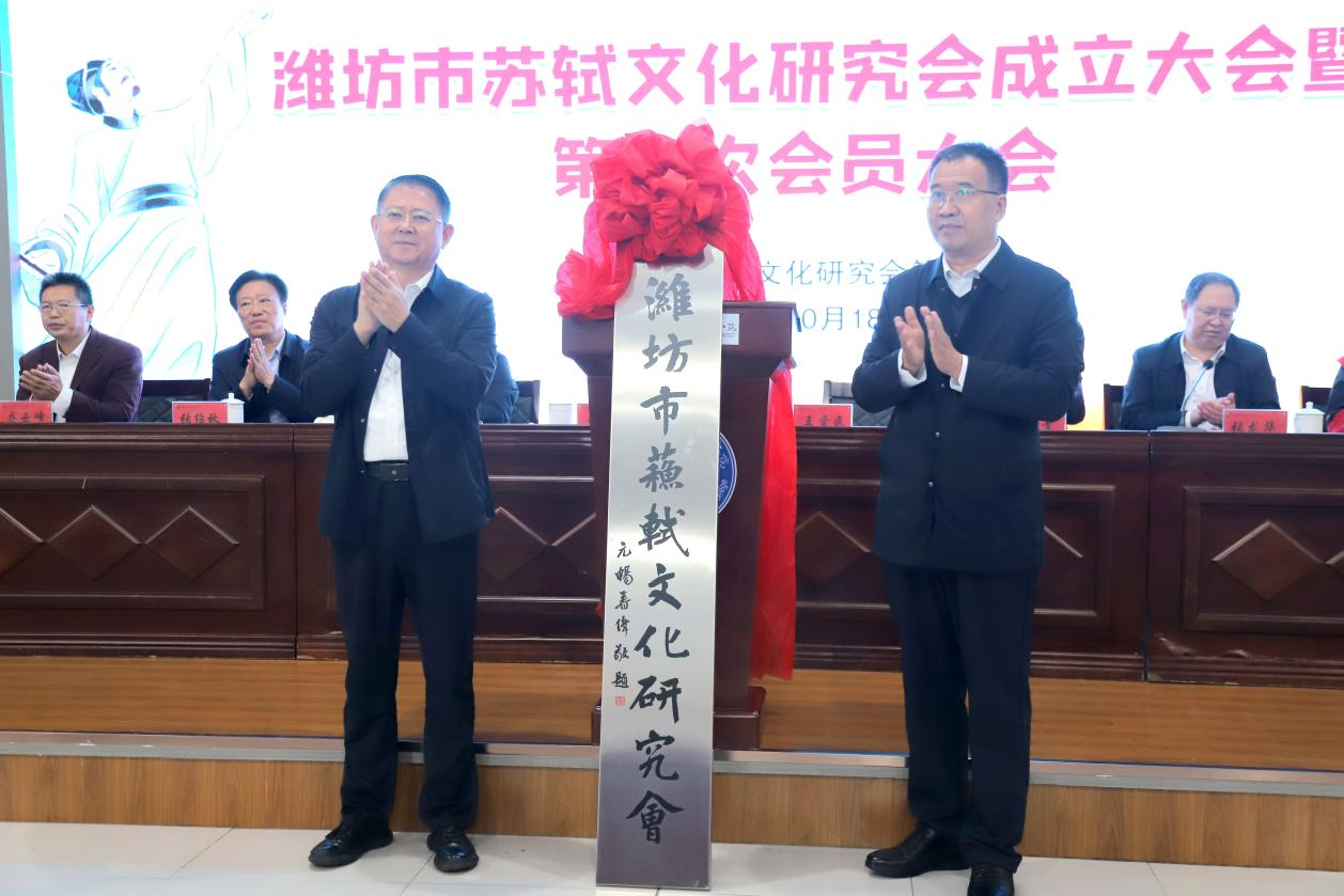 潍坊市委宣传部副部长、文联党组书记、主席刘世海,诸城市政协主席王爱民为潍坊市苏轼文化研究会揭牌。