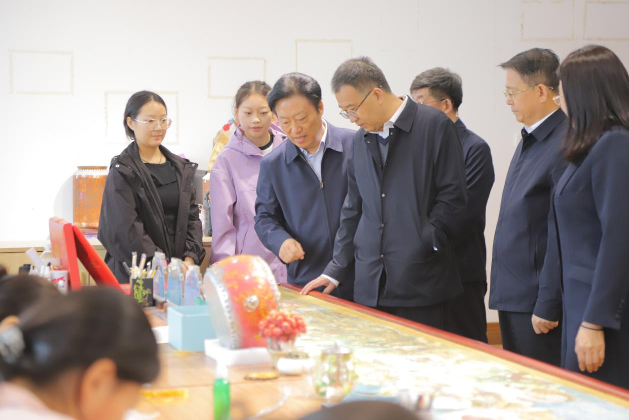 与会领导在校长张绍秋的陪同下参观了智能制造实训中心、幼教艺术实训中心等,对我校专业建设及产教融合模式发展给予了高度赞扬。