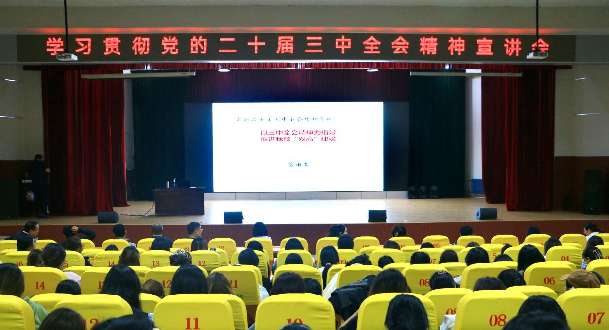 10月17日,潍坊工商职业学院深入学习贯彻党的二十届三中全会精神宣讲会在第一报告厅举行。党委书记葛国文宣讲。执行校长、党委常务副书记郑志松,公共基础部全体思政课教师及幼教艺术学院师生代表600余人参加活动。