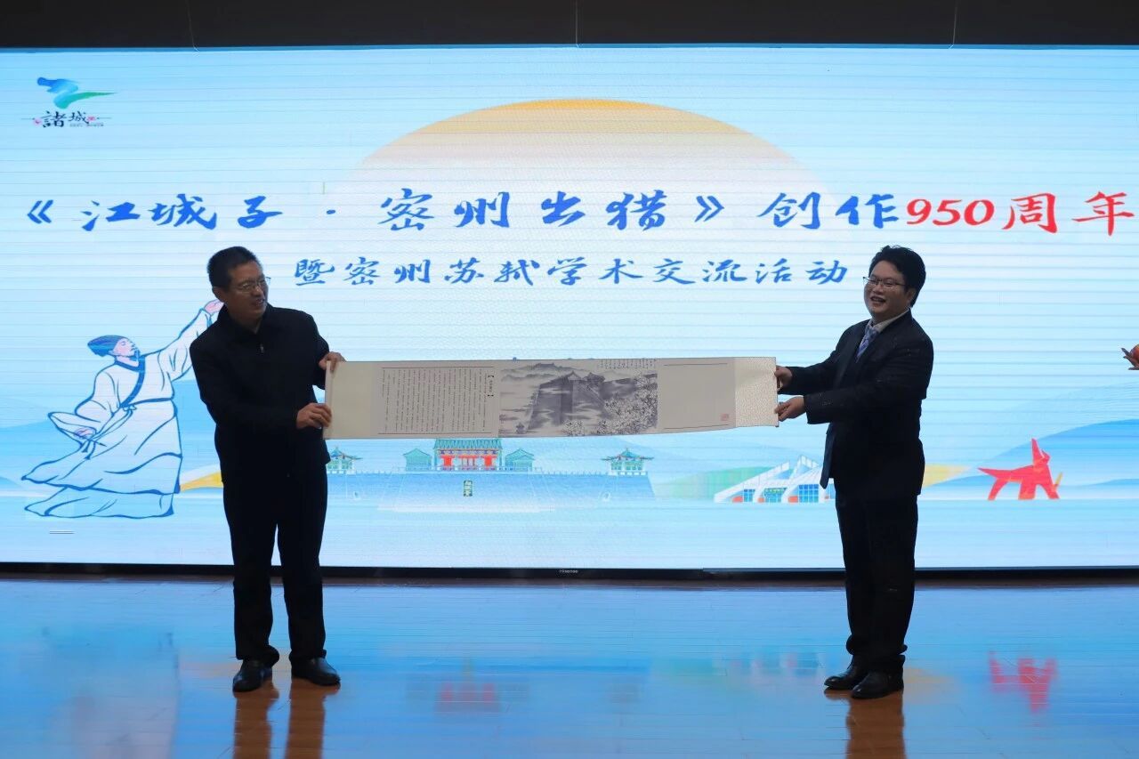 在学术分享环节,中国矿业大学苏轼研究院院长、徐州市苏轼文化研究会副会长管仁福教授深入阐释了《江城子·密州出猎》的经典意义;山东省政协文史委委员、山东省委网信办首席专家朱德泉从苏轼的密州诗文行踪出发,探讨其对新时代诸城“东坡行旅”的助力发力;潍坊市苏轼文化研究会会长乔云峰谈了该词的现实意义及对密州地域文化的重要作用。来自青岛黄岛区、莒南县、日照东港区等地的政协领导也先后发言,共话“密州明月”下的文化认同与发展愿景。与会学者普遍认为,此次大会标志着苏轼文化研究从“个体深耕”迈向“区域协同”,从“历史考据”延伸至“当代转化”。