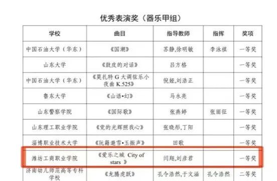 近日,2025年山东省大学生校园艺术节器乐舞蹈专项展示活动获奖名单揭晓。我校幼教艺术学院选派的两项作品在全省百余所高校的激烈角逐中脱颖而出,器乐作品《爱乐之城·City of Stars》荣获器乐甲组一等奖,舞蹈作品《映山红》获得舞蹈甲组三等奖,展现出扎实的专业素养与出色的艺术表现力。