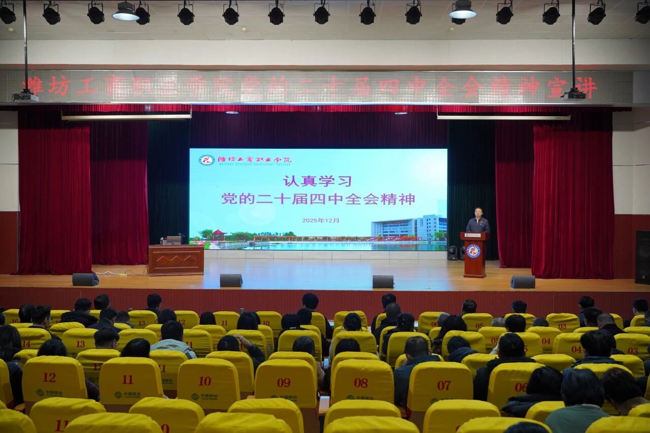 为推动党的二十届四中全会精神在学校落地落实,指引“十五五”时期学校高质量发展,12月18日,我校举行学习贯彻党的二十届四中全会精神报告会。校长张绍秋作宣讲报告,党委书记葛国文主持报告会,全体教职工参会。