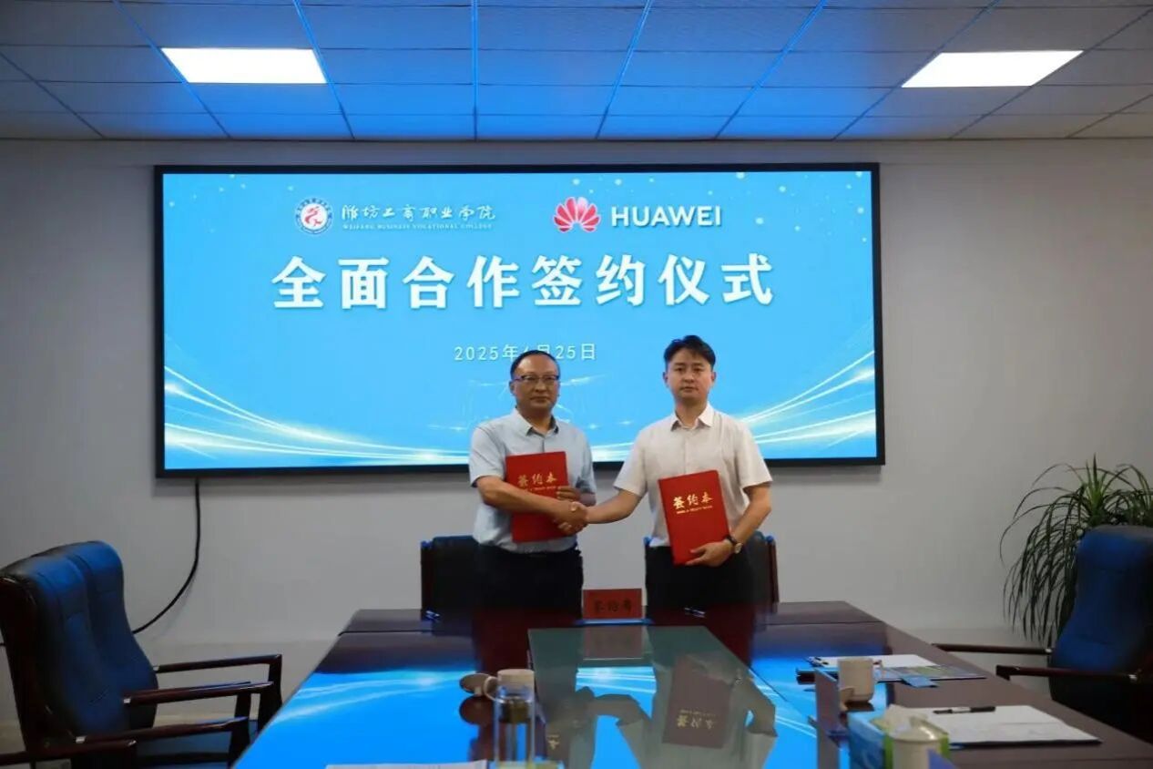 6月25日,潍坊工商职业学院与华为技术有限公司举行全面合作签约暨产业学院揭牌仪式。此次合作推动产教融合与职教创新发展,为区域数字经济发展提供人才支撑,现场落地“华为ICT学院”“新一代信息技术产业学院”“新一代信息技术跨企业培训中心”三项合作成果。