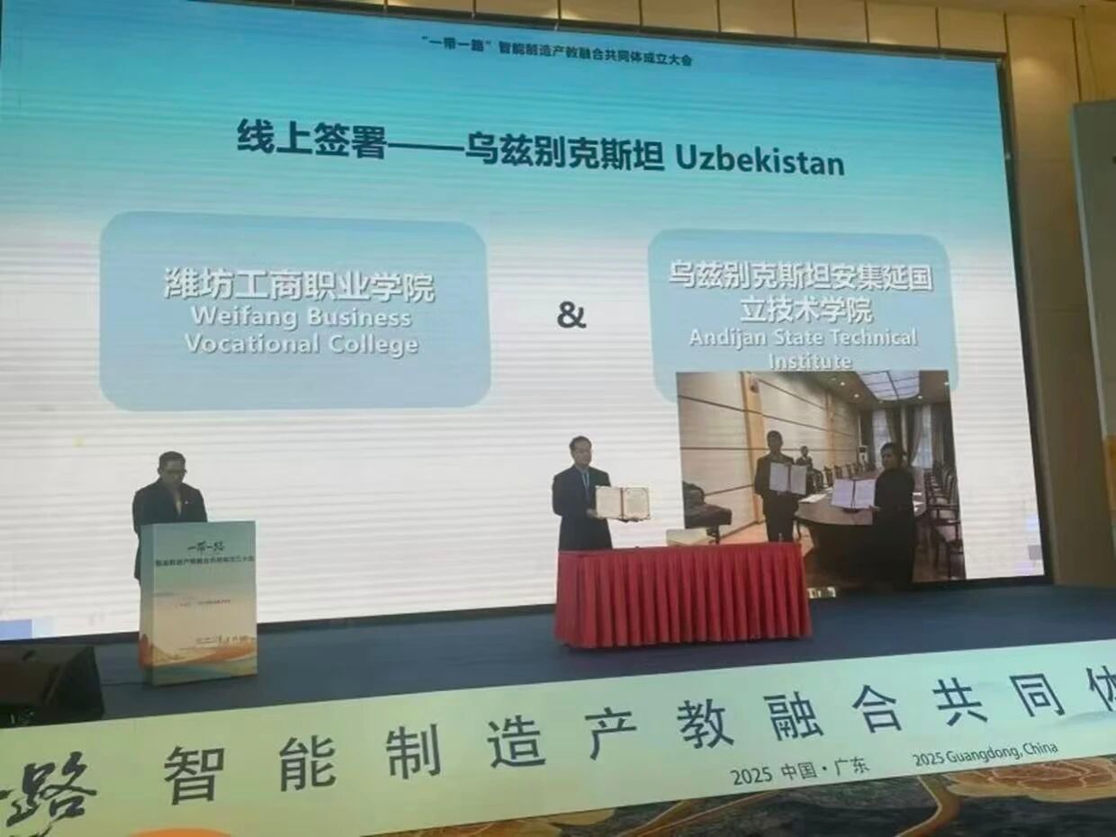 11月27日,教育部中外人文交流中心牵头组建的“一带一路”智能制造产教融合共同体成立大会在广州隆重举行,我校成功入选首批副理事长单位,并与乌兹别克斯坦安集延国立技术学院签署了国际合作办学协议。