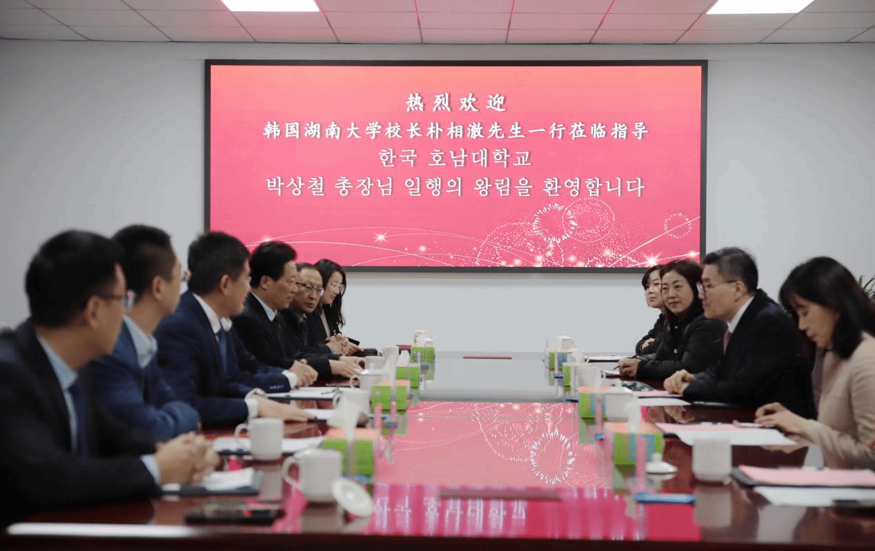 1月19日,韩国湖南大学校长朴相澈、国际交流处处长孙皖怡等一行5人来校参观交流,就推动国际教育合作进行深入洽谈。学校董事长郑明高,校长张绍秋,党委常务副书记、执行校长郑志松等领导陪同。