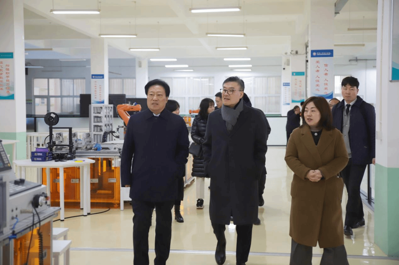 朴相澈一行参观了学校智能制造实训中心、汽车与航空产业学院、幼教艺术实训中心、尽美红色文化研究院、医养健康实训中心等教学实训场所,对我校先进的实训条件、鲜明的办学特色以及产教融合成果给予高度评价。
