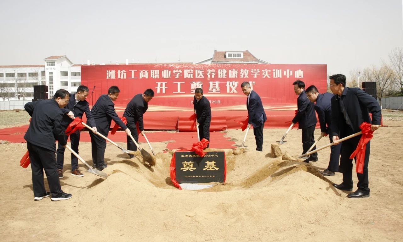 3月29日上午,我校山东省高水平专业群医养健康教学实训中心建设项目正式开工,这是我校落实国家和省市职业教育政策部署,改善办学条件,加强技能教学,提升人才培养质量的一项重要举措。诸城市委常委、宣传部长、教育工委书记刁立武,启辰控股集团董事长、潍坊工商职业学院董事长郑明高,青建国际集团副总裁赵凯,我校校长张绍秋,启辰控股集团后勤产业集团董事长董卿,以及教体局相关领导、我校领导班子成员、建设施工单位的有关同志和学校部分师生代表出席了仪式。本次开工仪式由我校执行校长、党委常务副书记郑志松主持。