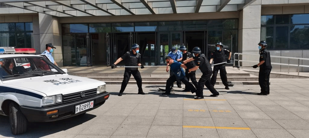为强化对校园暴力事件的有效控制, 5月18日上午9:00,潍坊工商职业学院、潍坊市经济学校与诸城市朱解派出所联合进行反恐防暴演练。根据学校制定的反恐防暴预案,安保部门组织实施演练,从快速果断制服强闯校园大门口的不法人员到接到巡逻队员报警迅速出警抓捕不法人员。整个演练过程体现出反恐防暴的实战性和针对性。