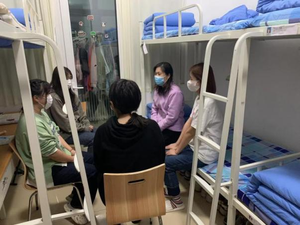 学院领导团结一心、齐心协力,每天召开辅导员例会,深入学生宿舍,开展疫情知识宣讲、安全隐患排查和思想状况调研等工作,全方位掌握校园封闭管理期间学生的心理变化,生活状况和存在困难,切实为学生办一些好事、实事,将学校对学生的关心关爱传达到位,将疫情防控各项措施落实到位,将学生生命安全和身心健康保障到位,牢筑疫情防控屏障,密织校园安全防护网。