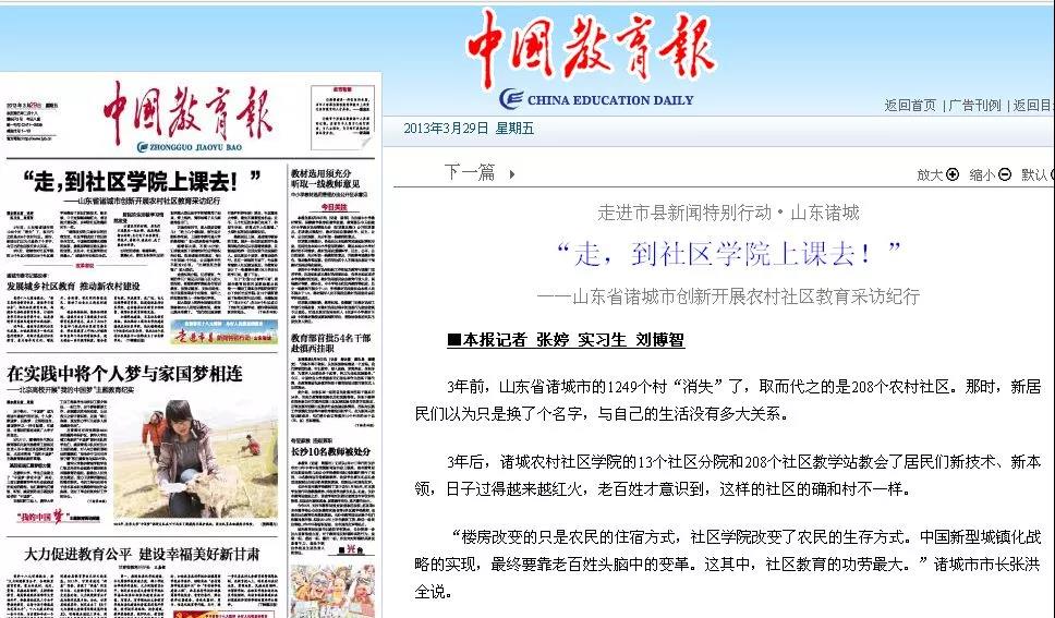 《中国教育报》、《光明日报》、《农民日报》、《大众日报》和《潍坊日报》等主流媒体,“诸城电视台”“潍坊电视台”“山东电视台”“中国社区教育网”“享学网”“潍坊教育信息网”等各大网站报道我们的经验做法;曾6次在省级以上会议上作典型发言;先后迎接了教育部、中国成人教育协会、国务院研究发展中心、国家开放大学以及全国各地的考察和调研。2021年1月被评为潍坊市服务“三农”职业教育十强院系。