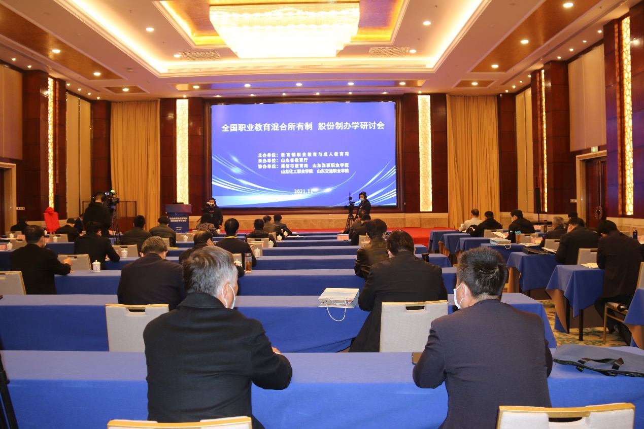 11月13日,由教育部职业教育与成人教育司主办,山东省教育厅承办的“全国职业院校混合所有制、股份制办学研讨会”在潍坊市召开。教育部职业教育与成人教育司副司长林宇视频连线参加并致辞,省教育厅总督学邢顺峰、潍坊市副市长李平分别致辞,我校副校长郭素森作为全国职业教育混合所有制办学研究联盟秘书长应邀出席会议并作主题报告。