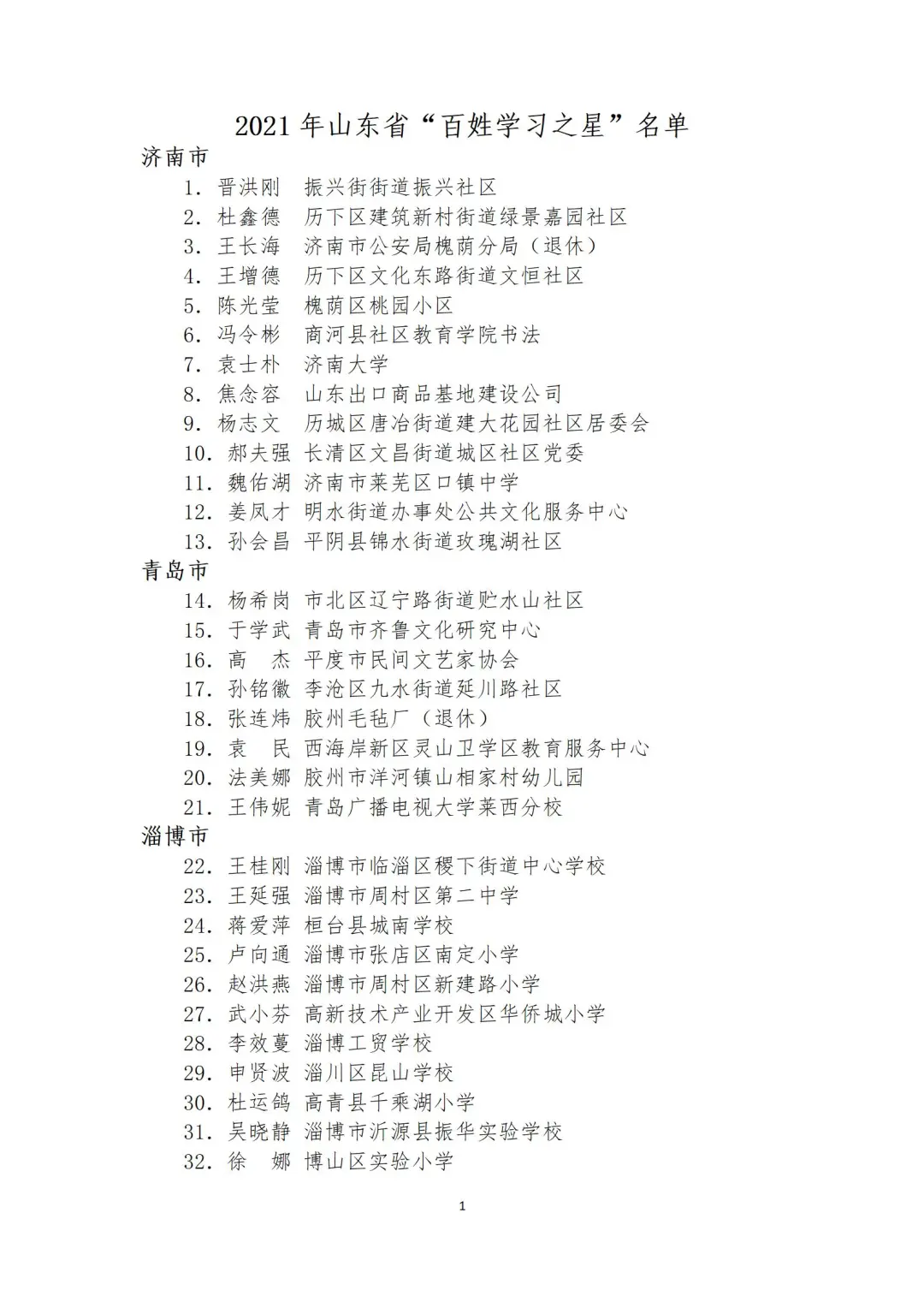 依据《山东省教育厅关于征集山东省“百姓学习之星”“终身学习品牌项目”和推荐全国“百姓学习之星”“终身学习品牌项目”的通知》的相关要求,全省各市组织了“百姓学习之星”和“终身学习品牌项目”征集活动。受山东省教育厅委托,山东成人教育协会于9月6日组织专家进行了评审,拟确定2021年山东省“事迹特别感人的百姓学习之星”10人;“特别受百姓喜爱的终身学习品牌项目”10个;“百姓学习之星”90人;“终身学习品牌项目”72个;推荐国家“百姓学习之星”5人;推荐国家“终身学习品牌项目”5个。我校两大平台成功入选山东省“终身学习品牌项目”,马汉波、白术明成功入选2021年山东省“百姓学习之星”。