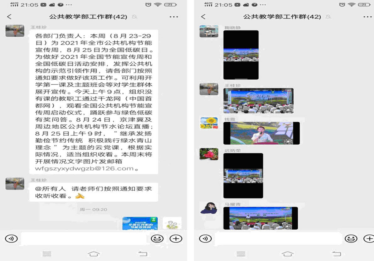 8月23日上午,学校全体领导班子成员集体观看了2021年全国节能宣传周启动仪式。各部门、二级学院线上线下采取多种形式组织师生进行观看。并利用开学第一课、主题班会、新生入学教育等对学生展开节能宣传教育。