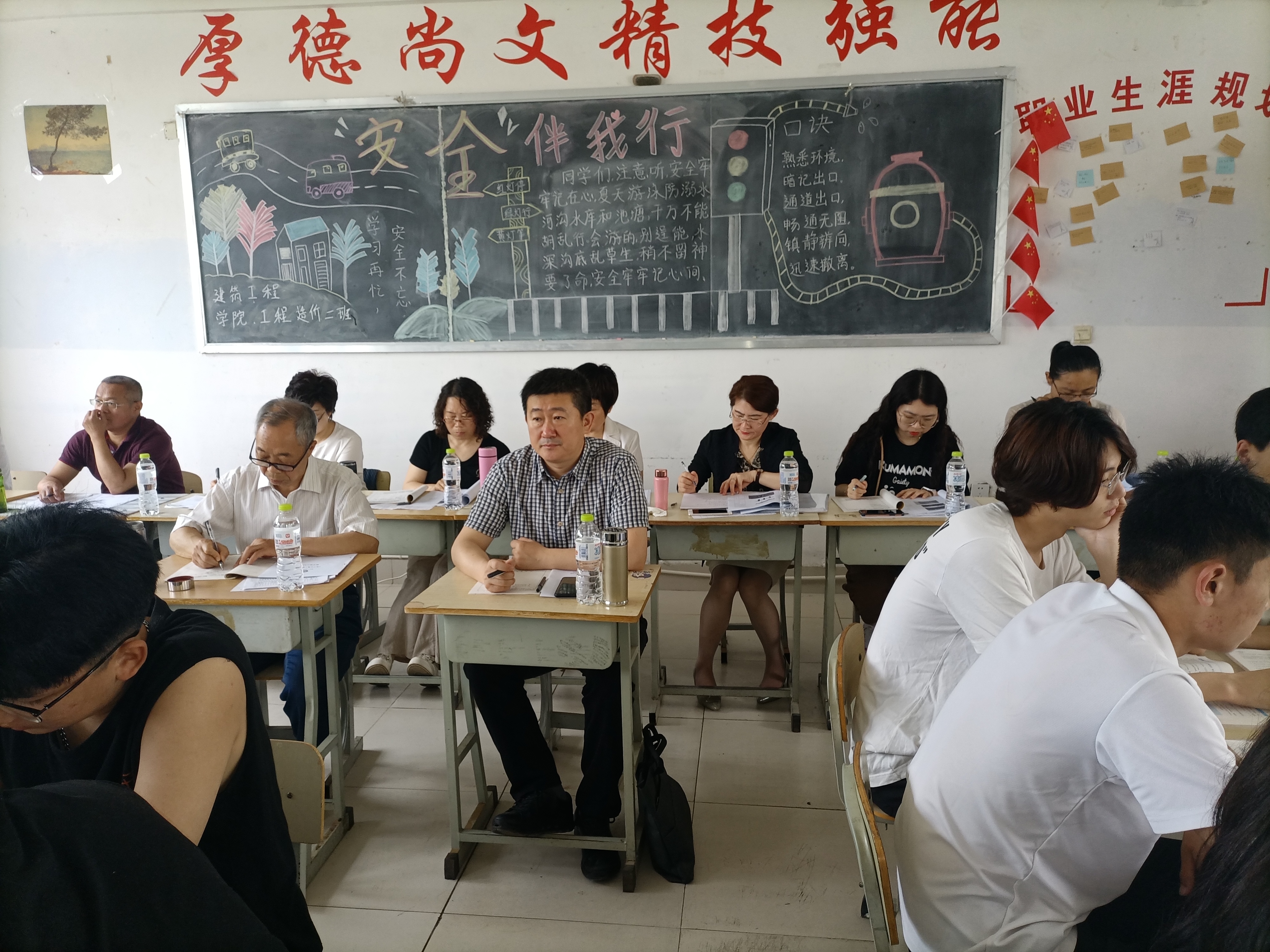 本次听评课活动在各教学楼和实训车间分三个小组进行,校务委员会主任张绍秋、校长王传旭和党委书记郑志松担任各小组评委会组长,各二级学院院长、教学副院长、教务处以及督导室的人员担任评委,21个参赛团队的主讲教师参加了本次听评课活动。