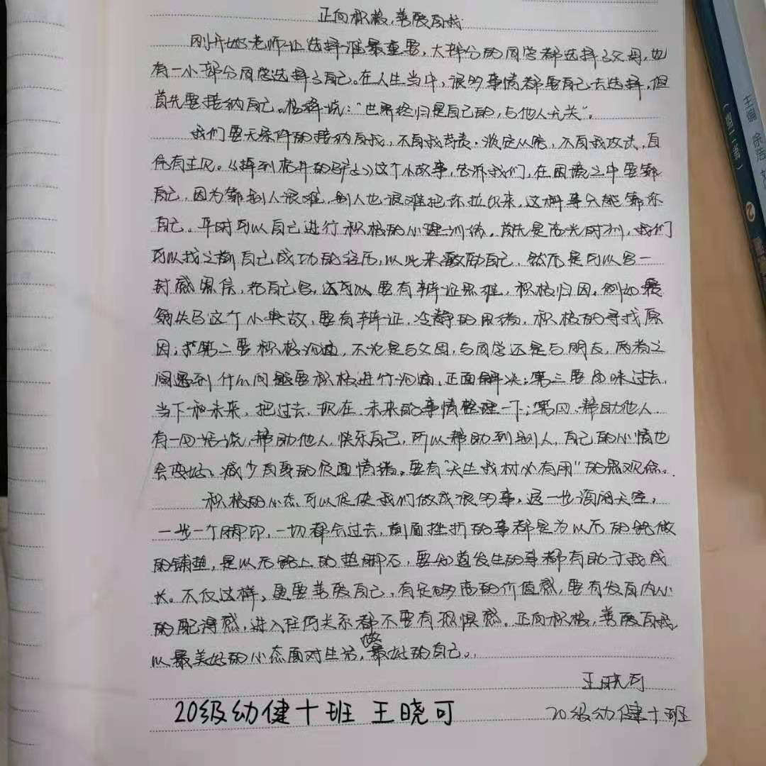 通过本次学习,同学们纷纷表示对于自己的情绪和行为有了更深入及更专业的认识,并且学会了“爱自己”的实用方法。在今后的人生中会按照沈老师给出的建议和方法,积极行动起来,在日常点滴中构建阳光积极的心态,让自己快乐,让他人幸福。